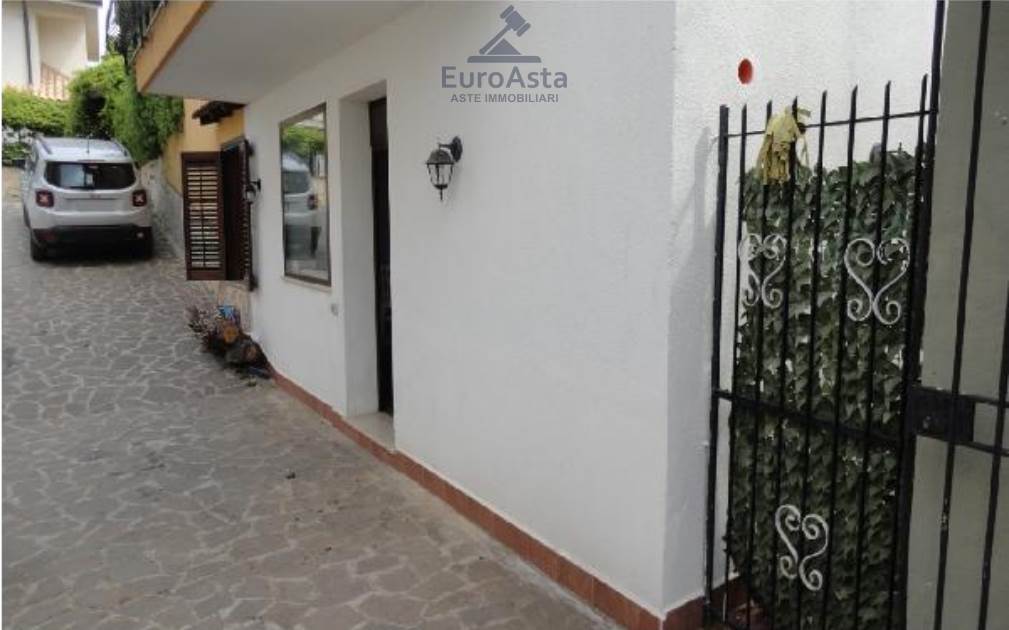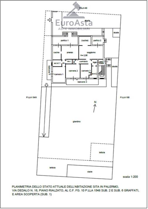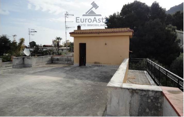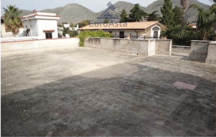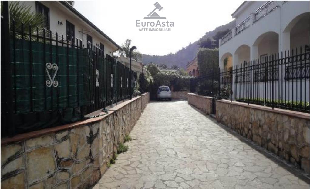 Piena ed intera proprietà 1/1 di fabbricato con terreno pertinenziale sito in Palermo, località Mondello, via Dedalo n. 16, realizzato in assenza di titoli autorizzativi e allo stato attuale risulta interamente abusivo, costituito da Abitazione in Villino (cat. A/7), Lastrico Solare (cat. L) Locale di Deposito (cat. C/2)