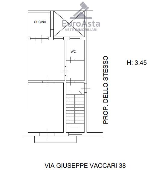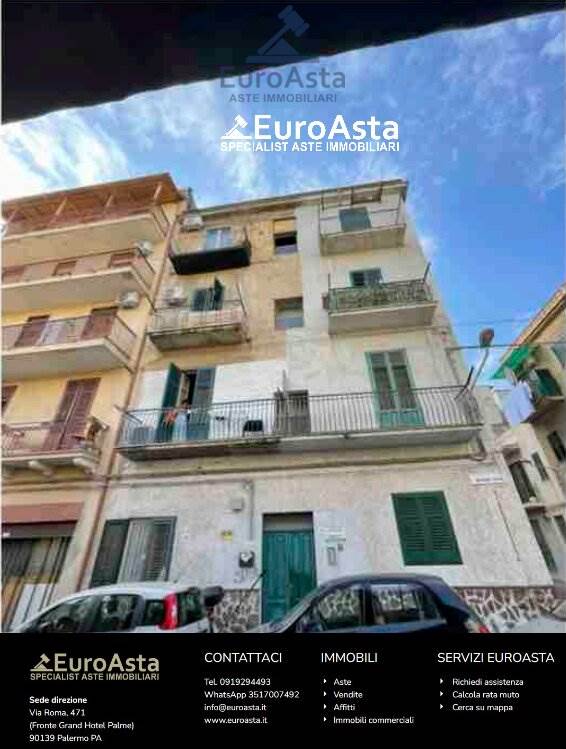Piena proprietà dell’immobile ubicato in Palermo, via Giuseppe Vaccari n. 40, ( in catasto n. 38) distinto al N.C.E.U. di Palermo al fg.53, p.lla 837, sub.6, secondo piano, a destra salendo le scale, composto da tre vani e accessori, zona cens. 2, cat. A\4, classe 5, consistenza vani 3,5, rendita euro 103,30, interno 5