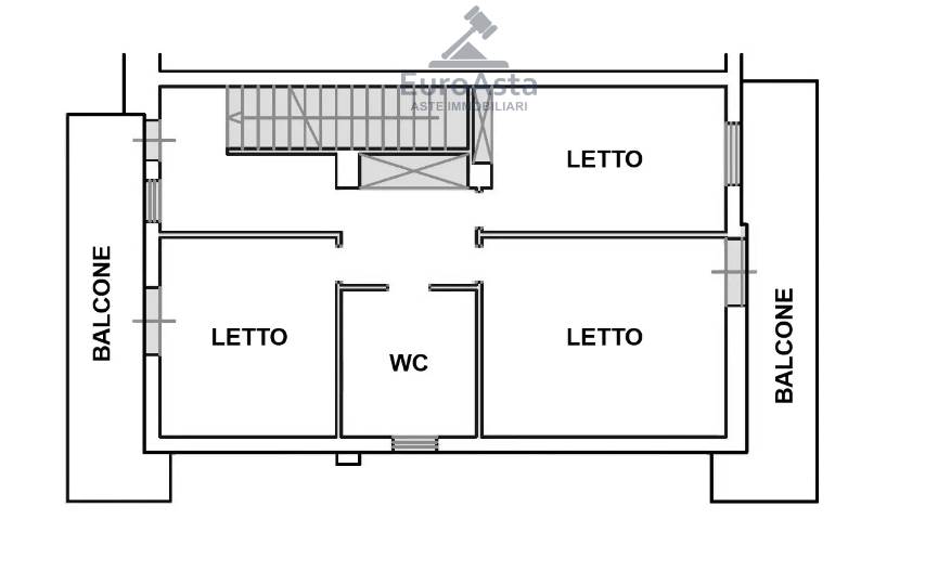 dotato di due balconi ad “L” pavimentati con piastrelle ceramiche e con balaustre in ferro.