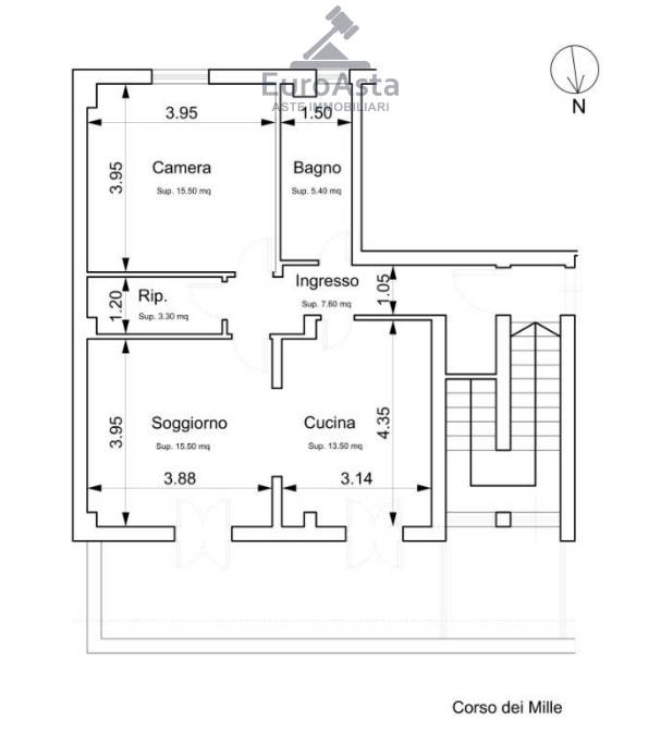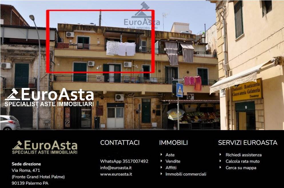 LOTTO n.7: “Appartamento sito in Palermo Corso dei Mille 763, piano II a sinistra, riportato in Catasto Fabbricati del Comune di Palermo al foglio 77, p.lla 714, sub 12, cat A/2, cl.8, vani 4, R.C. € 371,85;L’immobile è occupato.