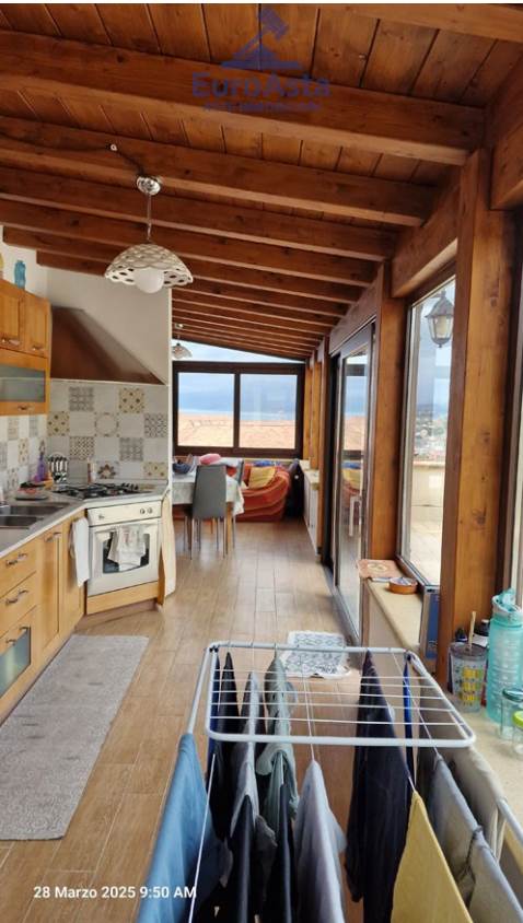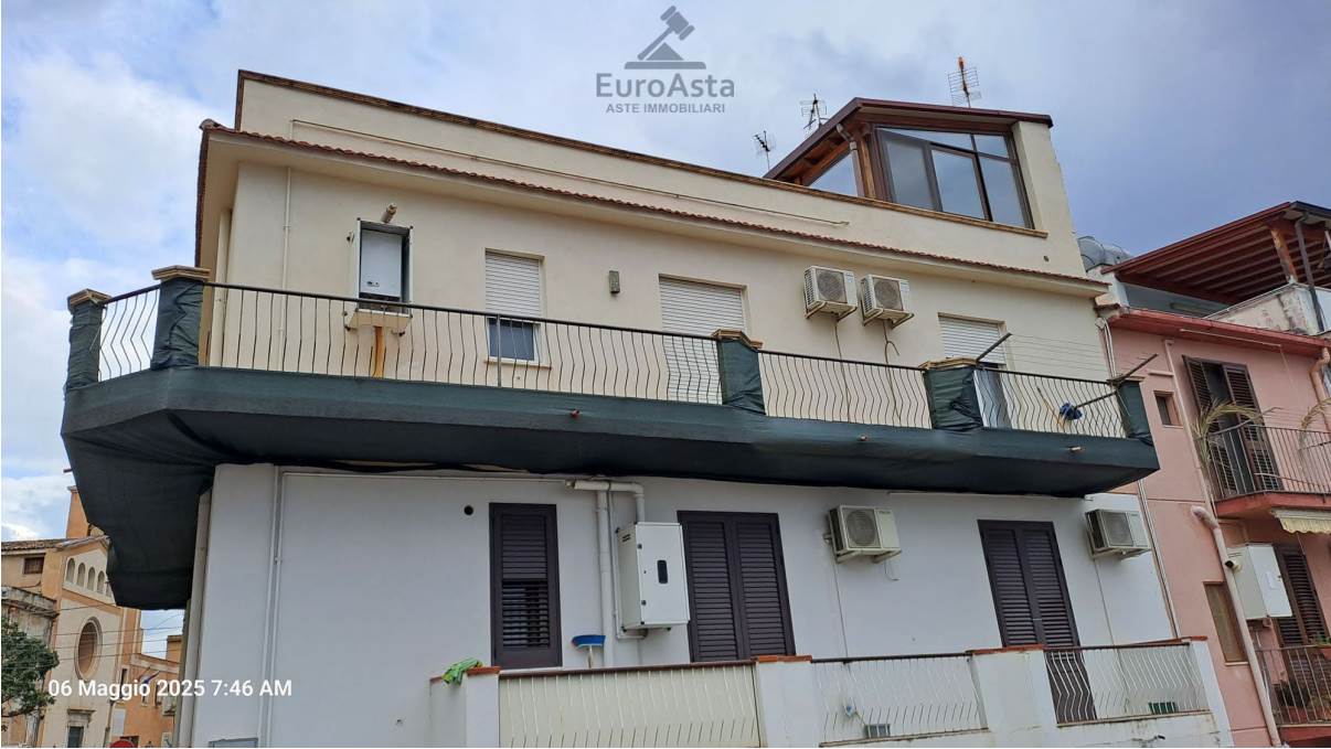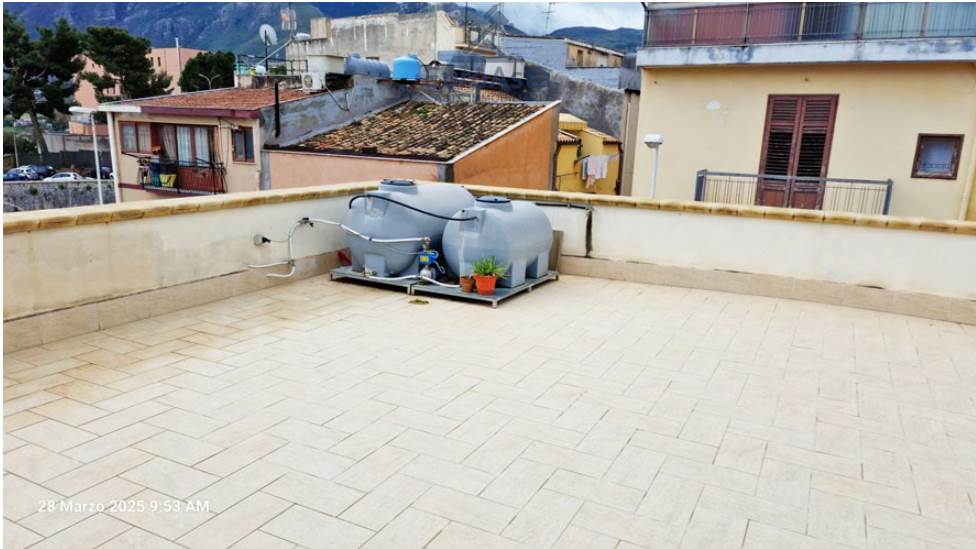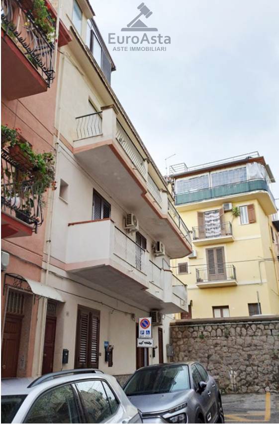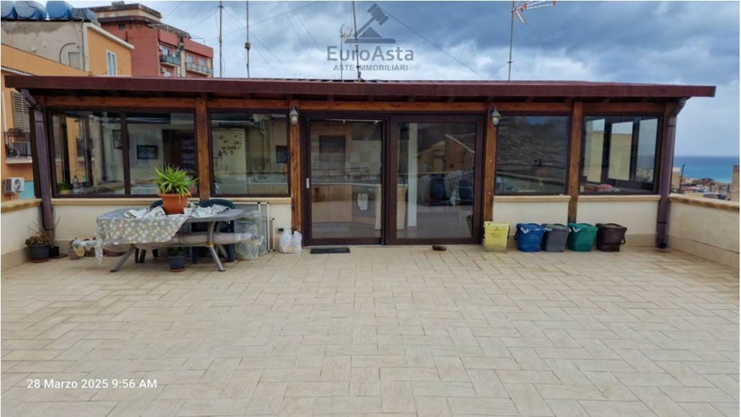 piena proprietà dell’appartamento, piano 2 e 3, composto da ingresso salone-soggiorno, corridoio disimpegno, 2 camere da letto singole, doppio servizio, 1 camera da letto matrimoniale, un ripostiglio, un balcone che corre lungo i tre prospetti. Dalla scala interna si accede al terrazzo di cui una parte risulta chiusa con struttura in legno ed infissi in vetrocamera, lo spazio interno è adibito a cucina soggiorno e ripostiglio.