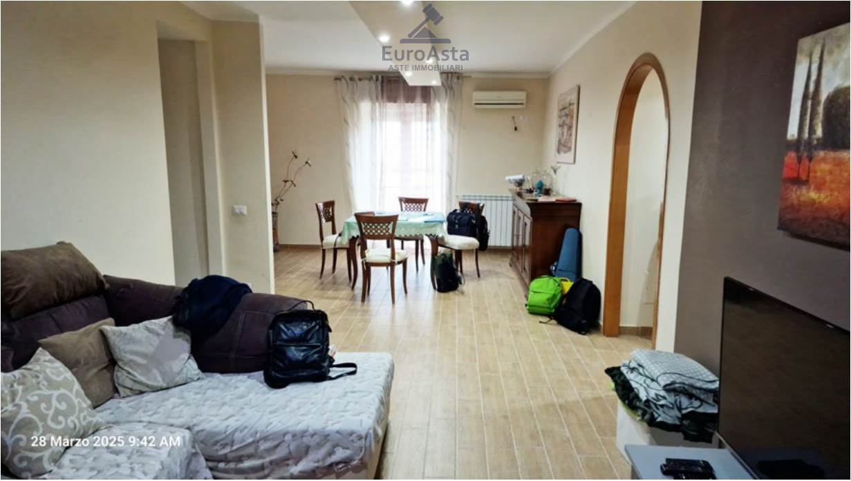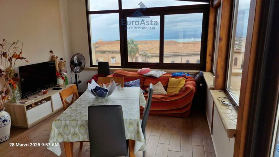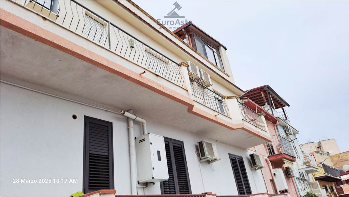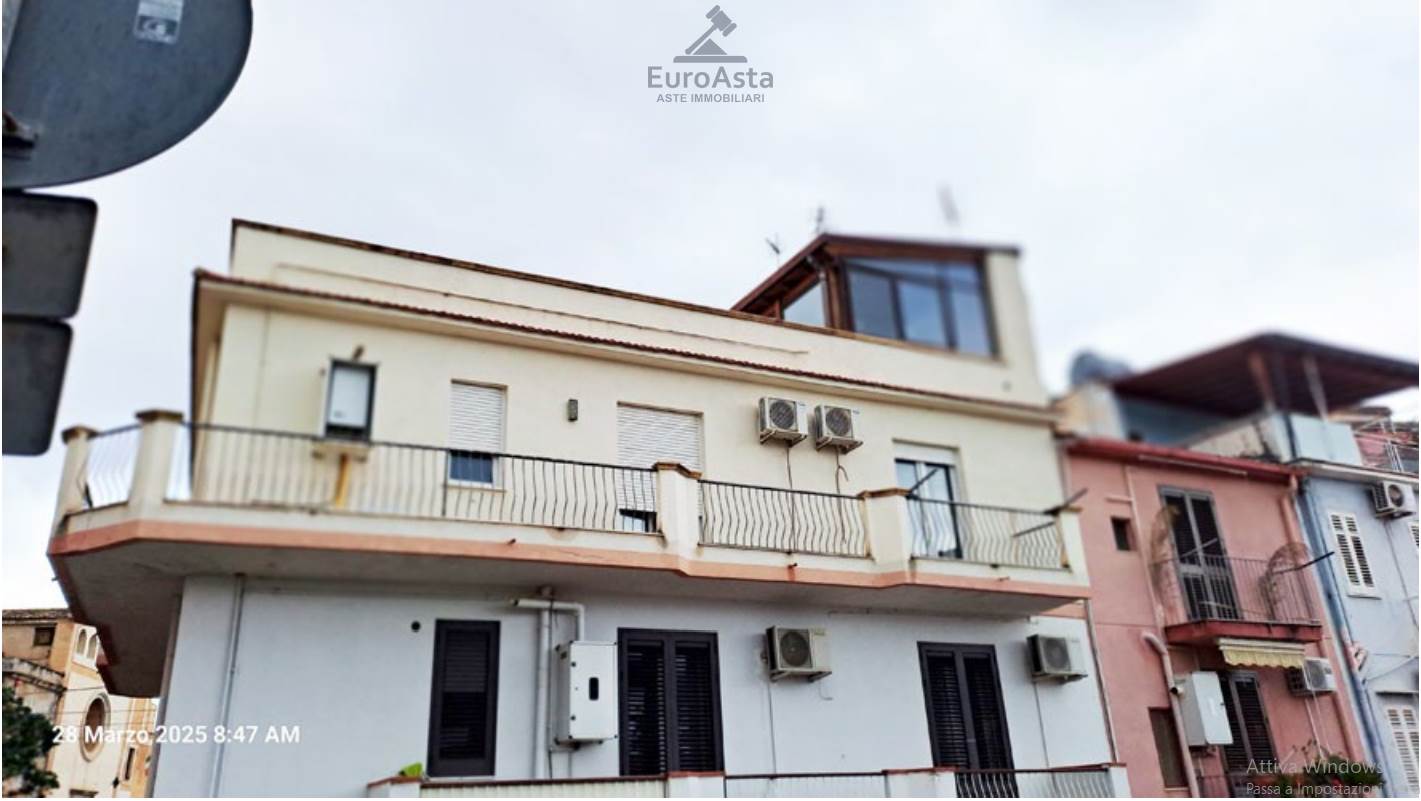 piena proprietà dell’appartamento, piano 2 e 3, composto da ingresso salone-soggiorno, corridoio disimpegno, 2 camere da letto singole, doppio servizio, 1 camera da letto matrimoniale, un ripostiglio, un balcone che corre lungo i tre prospetti. Dalla scala interna si accede al terrazzo di cui una parte risulta chiusa con struttura in legno ed infissi in vetrocamera, lo spazio interno è adibito a cucina soggiorno e ripostiglio.
