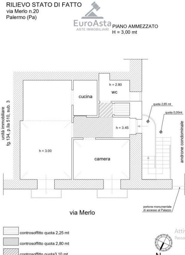 città e più precisamente nel rione storico (o mandamento) della Kalsa. L’immobile, posto ad una quota di circa 2,65 m rispetto al piano di