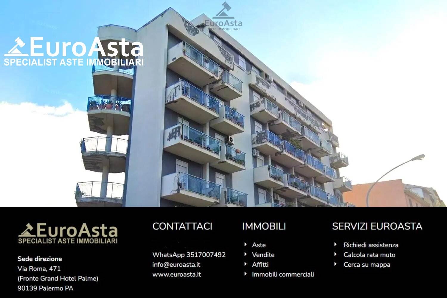 Appartamento a Palermo (PA), quartiere Brancaccio, via Brancaccio 2/M. Zona semicentrale. Superficie commerciale di 137,39 mq. Piano primo. Vano scala e ascensore. Ingresso, corridoio, soggiorno, salone, cucina, 2 camere, 2 ripostigli, bagno, 6 balconi e terrazzino. Riscaldamento centralizzato. Incluso diritto di uso su posto auto scoperto. Condizioni discrete