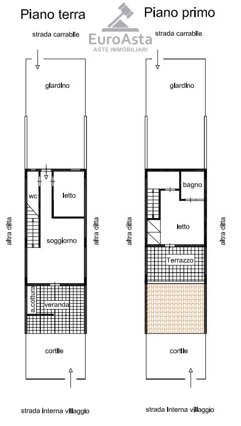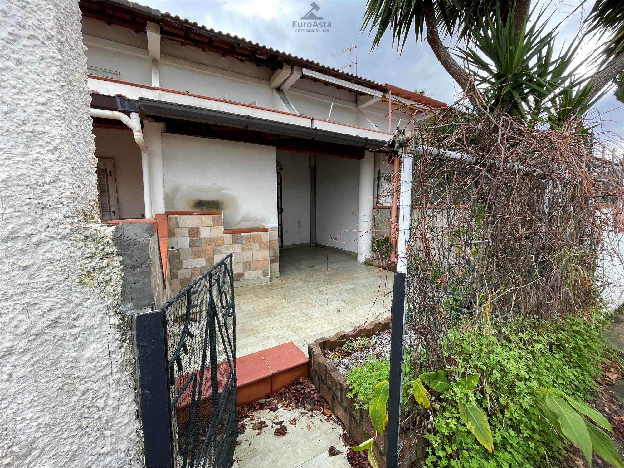 Casa indipendente (villetta a schiera) a Furnari (ME) C.da Saiatine (Villaggio Laura) sup. comm. 56 mq Fabbr. a due elevazioni f.t. composto da: Piano terra: soggiorno, una zona letto, un bagno. Piano primo: una zona letto, un bagno, balcone. La casa è dotata di: cortile anteriore e posteriore di 58 mq tot., posto auto scoperto di pertinenza di mq 11. Catasto: Furnari (ME), Cnd Siena Int. 6 Piano T-1 f. 1 particella 486, graffata con part. 470 e part. 431 sub 5, cat. A/2, cl. 3, vani 3,5, r.c. €.124,72