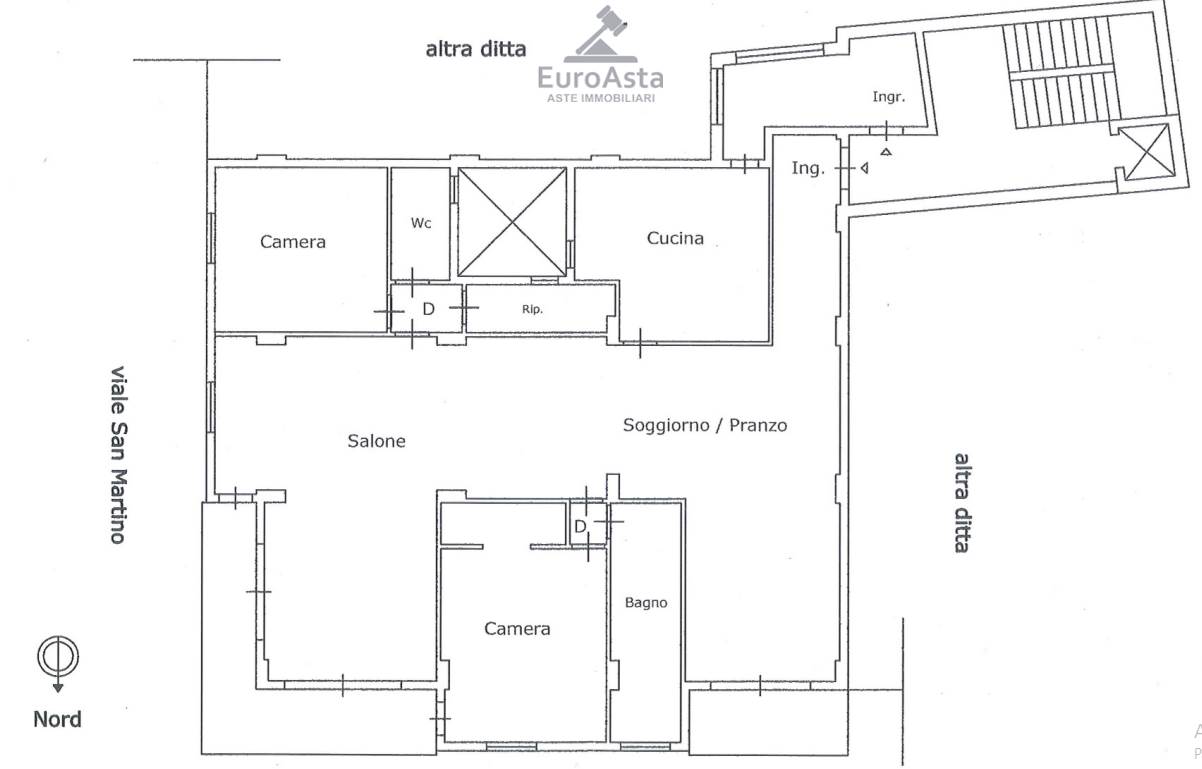 nord e internamente verso pozzo luce, è articolato in: a) un grandissimo ambiente articolato in