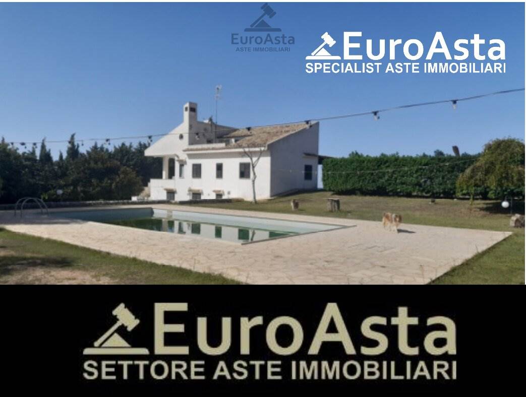 Diritto di proprietà di una villa a tre elevazioni con garage, piscina, spogliatoio, struttura precaria smontabile in acciaio adibita a locale deposito, fabbricato adibito a scuderia e terreni circostanti, siti a Ragusa nella C.da Tribastone, a confine con la S.P. 25 che collega Ragusa a Marina di Ragusa, di fronte all’Hotel Poggio del Sole.