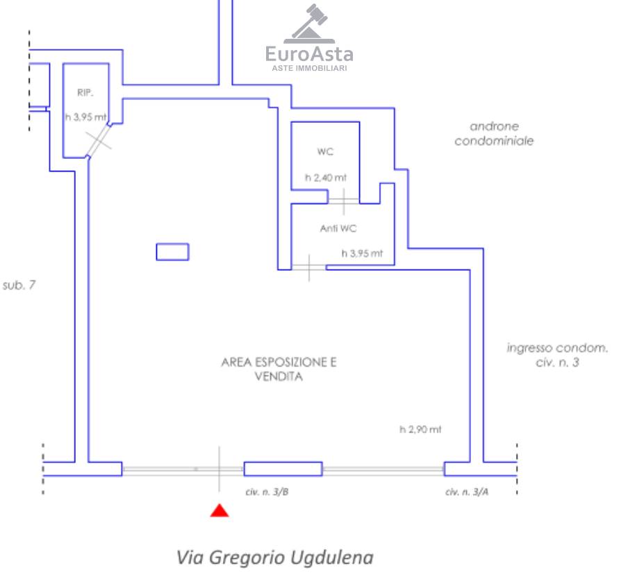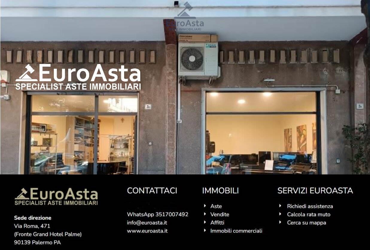 LOTTO C: piena proprietà di un locale commerciale, ubicato a Palermo, in Via Gregorio Ugdulena nn. 3/A, 3/B, piano terra, composto da due vani, ripostiglio e servizio igienico con relativo antibagno. Confinante a nord/ovest con Via Gregorio Ugdulena; a nord/est con altra unità immobiliare (sub. 7 LOTTO D); a sud/ovest con ingresso fabbricato civ. 3 e androne condominiale; a sud/est con altra unità immobiliare (sub. 3 LOTTO B). Censito al C.F. al foglio 33, p.lla 359, sub. 38 (già sub. 5 e 6) cat. catastale C/1, consistenza 54 mq, superficie catastale 62 mq, rendita € 3.145,84