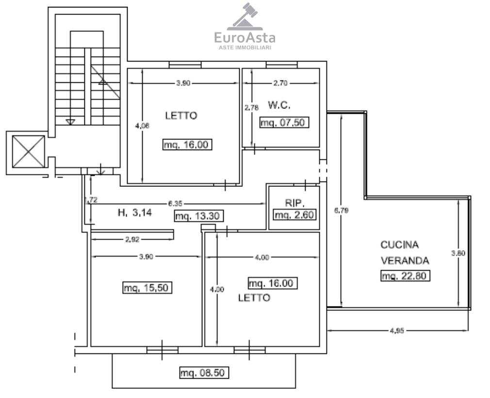 Piena proprietà dell'appartamento per civile abitazione, in Palermo, via Ferdinando Gangitano (oggi via A. Contorno) n.2, vani 5, al NCEU del comune di Palermo al Fg. 77 Particella 1870, sub. 24, categoria A/3, al piano 2, sup. catastale mq. 87,00 escluse aree scoperte, sup. commerciale mq. 96,00 incluse aree scoperte, al piano secondo salendo le scale a sinistra, dotato di ascensore e scala unica. Composto da: ingresso, tre vani, WC, ripostiglio, terrazzo coperto trasformato in veranda adibita a cucina.