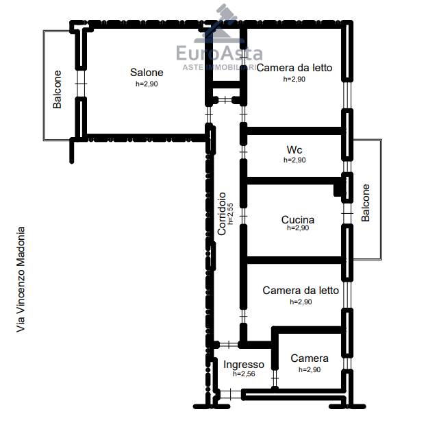 Appartamento ubicato in Palermo (PA), Via Madonia Vincenzo n. 21, piano terzo, annotato al C.F. del Comune di Palermo al foglio 61, particella 1234, sub 39. l’immobile risulta composto da 5,5 vani ed in particolare da un ingresso che disimpegna un piccolo vano ed un corridoio che a sua volta disimpegna i restanti vani costituiti da una camera, dalla cucina con balcone, dal bagno, dalla camera da letto matrimoniale con piccolo spogliatoio e da un piccolo salone con balcone; tutti i vani, ad eccezione dell’ingresso e del corridoio prospettano rispettivamente o sul cortine interno o sulla via Vincenzo Madonia;