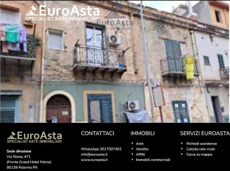 Piena proprietà appartamento non in condominio in Palermo, via Conte Federico n. 54, composto da p. t. e p.1. Manutenzione mediocre/scadente, privo di impianto di riscaldamento, composto da cucina-soggiorno, camera da letto, ripostiglio in sottoscala, piccolo disimpegno, w.c. e cameretta, Censito al C.F. al foglio 88, p.lla 245, sub. 2, categoria catastale A/4, zona censuaria 2, cl.4, consistenza 2,5 vani, superficie catastale mq 57, rendita catastale € 63,27