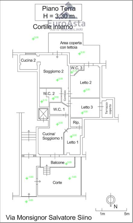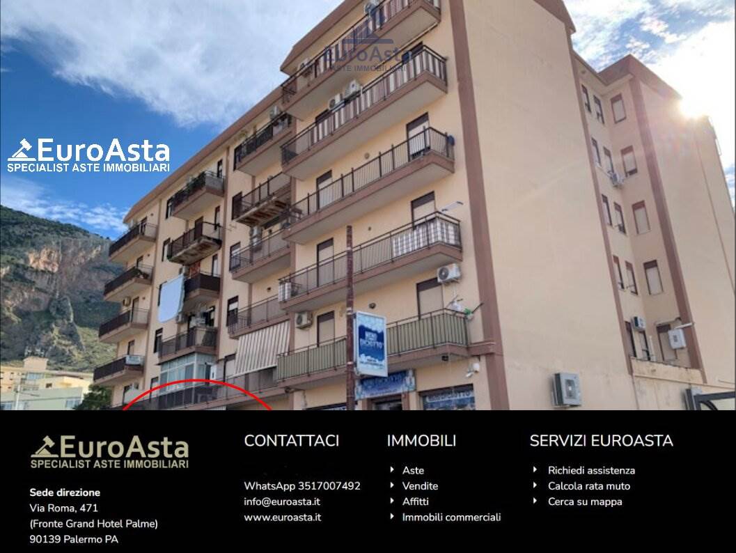 Piena proprietà di un immobile ad uso abitativo, ubicato in Capaci (PA), Via Monsignor Salvatore Siino n. 51, piano terra. Censito al C.F. al foglio 3, p.lla 1392 sub 32 del Comune di Capaci. L’immobile è attualmente diviso in parti, senza separazione degli impianti, ed è composto da: un soggiorno con angolo cucina, un secondo soggiorno, tre camere da letto, una cucina, tre W.C. (dei quali uno interno ad una stanza da letto), un ripostiglio, un disimpegno, un terrazzino coperto prospiciente una chiostrina interna e un balcone con villetta sul prospetto principale di Via Monsignor Siino. Confinante: a nord con la Via Monsignor Siino, a sud con un cortile interno dell’edificio adibito a parcheggio autovetture, nelle altre direzioni col vano scala e con altri immobili dello stabile.