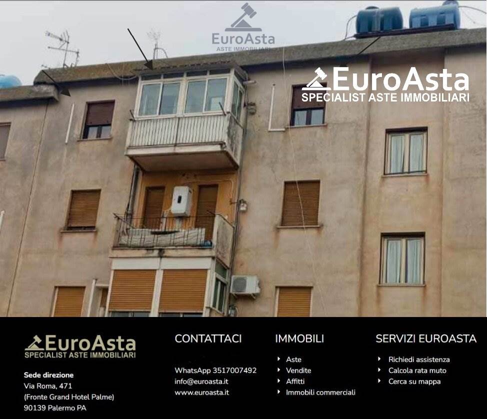 Piena proprietà dell’abitazione sita in Palermo, alla Via Salvatore Carnevale n. 4, piano terzo composta da un soggiorno, cucina, tre camere, un disimpegno, un wc ed un ripostiglio.
