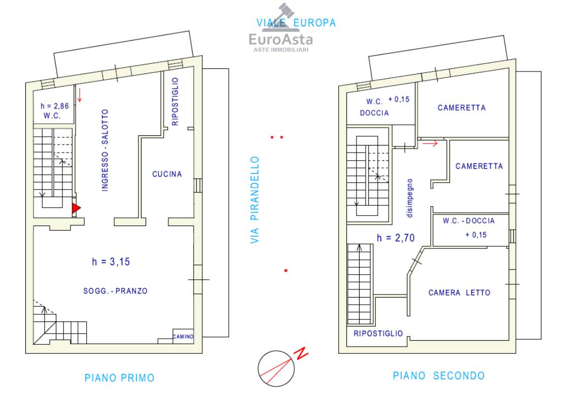 Appartamento civile abitazione, ubicato al primo e secondo piano, di edificio sito in Viale Europa al civ. 472, formato da quattro elevazioni fuori terra, costruito tra gli anni 50 e 70 e composto, al I° piano, da ampio ingresso-salotto, soggiorno pranzo, cucina solo cottura, w.c. e ripostiglio; al II° piano da disimpegno, camera matrimoniale con annessi w.c.- doccia e ripostiglio , due camerette e w.c.- doccia. Nella zona sono presenti attività commerciali primarie e secondarie, mentre non ci sono aree destinate a parcheggio, tranne che per una piccola area di risulta in prossimità dell'immobile che riesce a contenere circa 20 auto